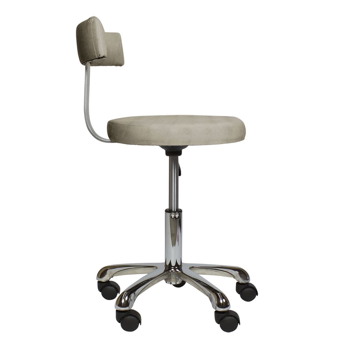 Удобный стул мастера МД-9017 с высокой посадкой от интернет-магазина DENIRASHOP.RU. Он отлично подойдет парикмахерам, визажистам, мастерам по маникюру и педикюру, а также другим специалистам. Высота уровня сиденья регулируется с помощью пневматики от 445 до 575 мм. Данная модель комплектуется эргономичным сиденьем круглой формы и высокой анатомической спинкой, которые соединены между собой надежным каркасом из полированного металла. Для производства мягких элементов применяются такие высококачественные материалы:- износостойкий плотный поролон;