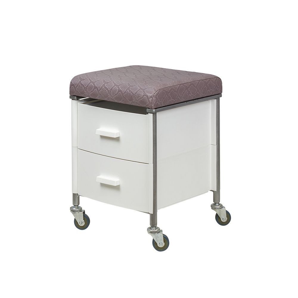 Стул мастера педикюра создан из качественных материалов. Каркас из стали не поддается коррозии и не боится попадания влаги. Боковины и ящики изготовлены из ударопрочного пластика. Резиновые колеса не оставят на полу царапин. В качестве наполнителя использован поролон. Обивка выполнена из мягкой экокожи. Износостойкий материал легко очищается и дезинфицируется.