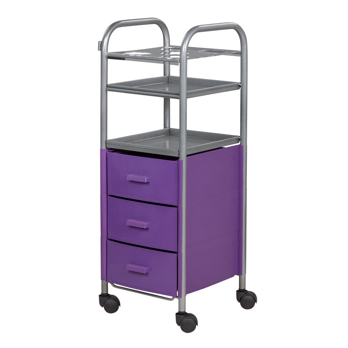 Каркас парикмахерской тележки выполнен из оцинкованной стали. Пластиковые колеса обеспечивают тихое перемещение оборудования и не царапают напольное покрытие. Полки выполнены из металла, устойчивого к воздействию дезинфицирующих и косметических средств. Ящики и боковые стенки изготовлены из ударопрочного пластика.