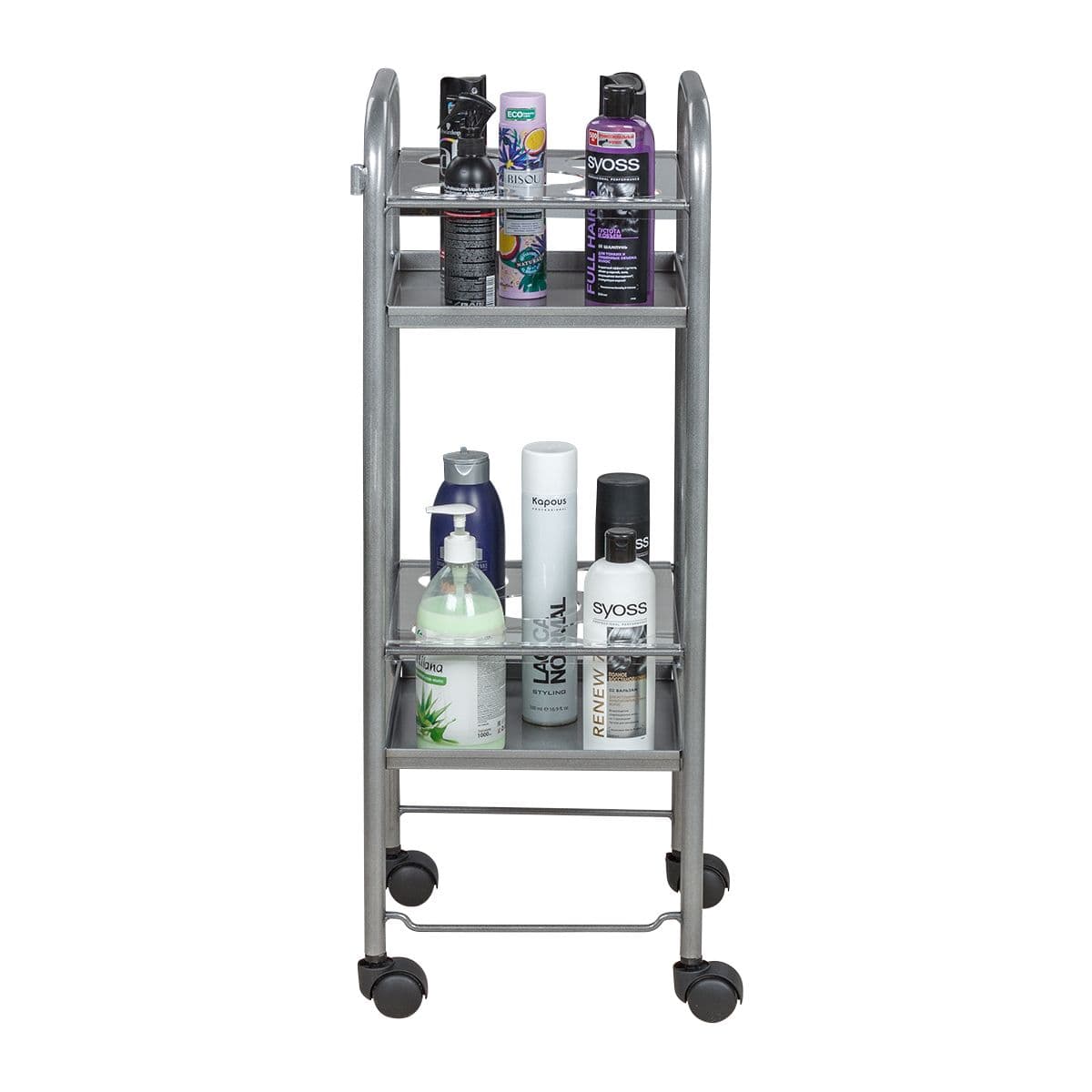 Стильная и легкая тележка для шампуней Синди-01 станет незаменимым помощником парикмахера. С таким оборудованием шампуни, бальзамы и лаки для волос будут всегда под рукой мастера.