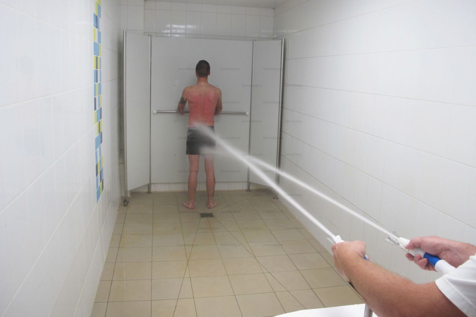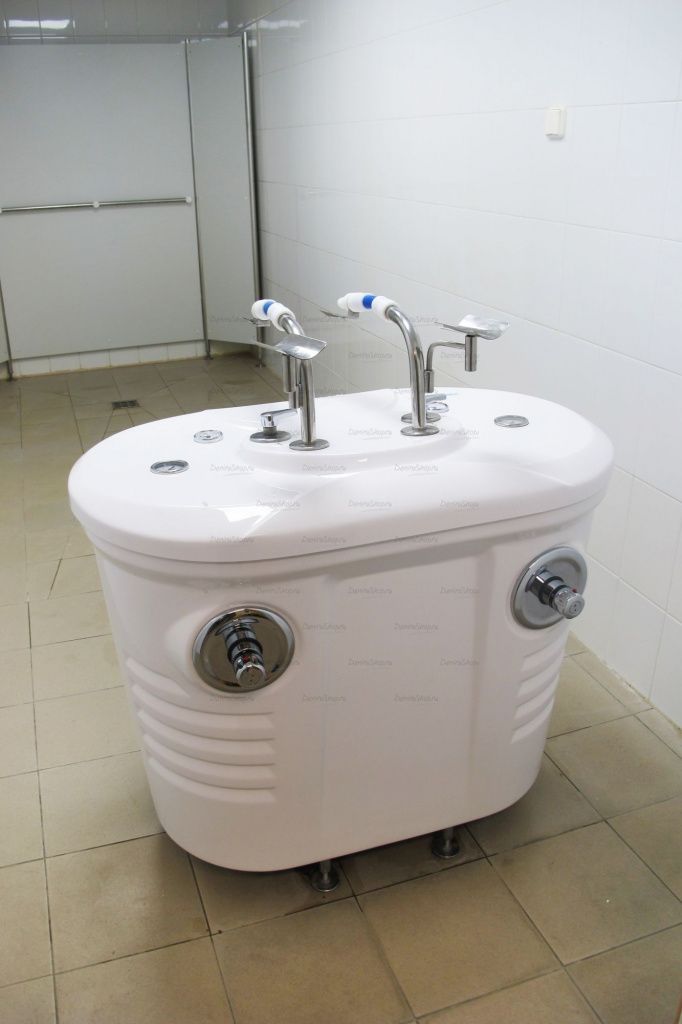 Для удобства медицинского персонала установка струевого душа оборудована специальными подлокотниками.