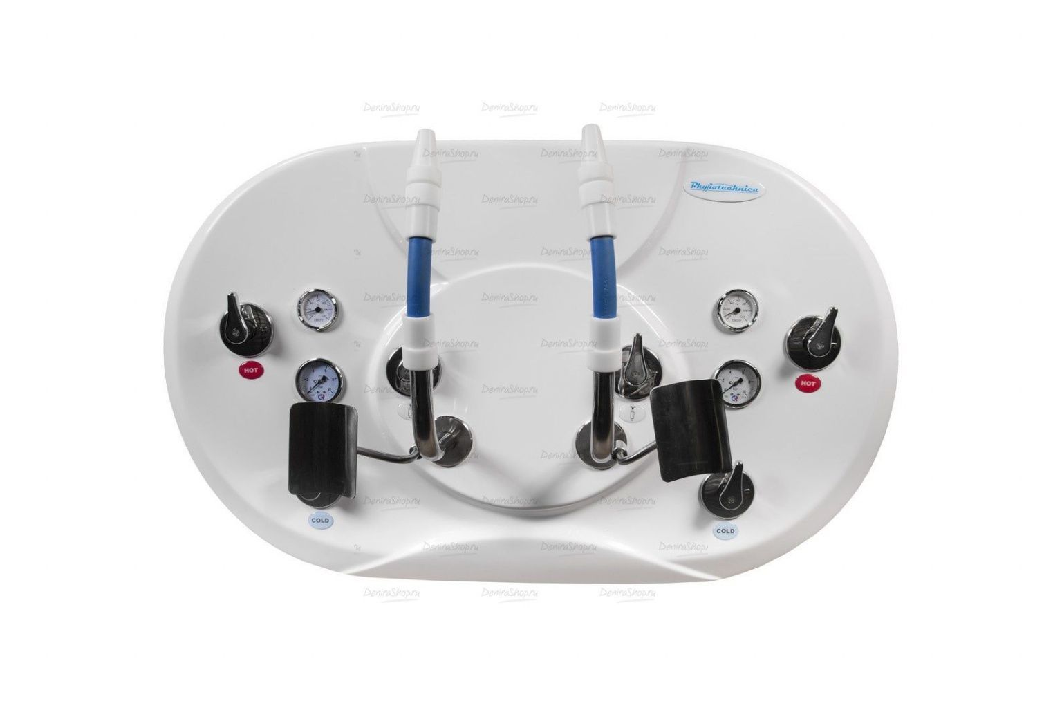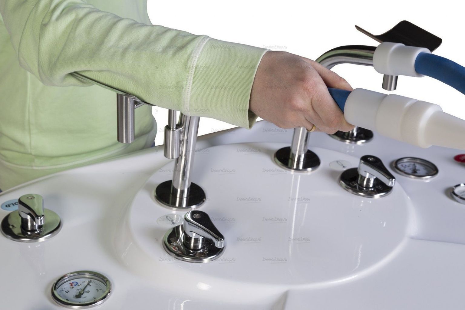 Для удобства медицинского персонала установка струевого душа оборудована специальными подлокотниками.