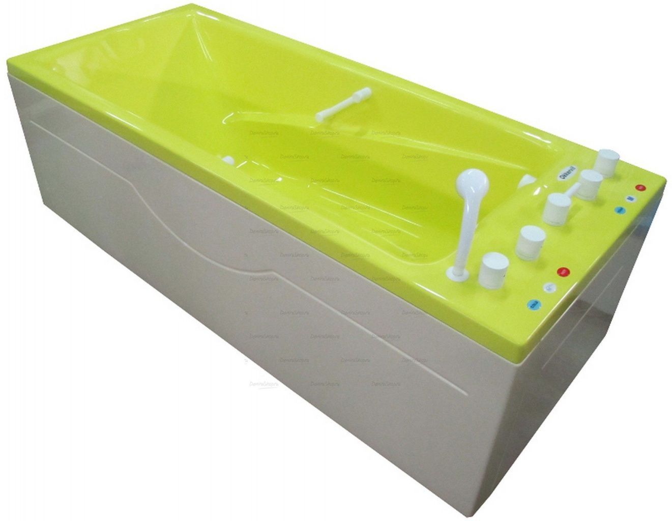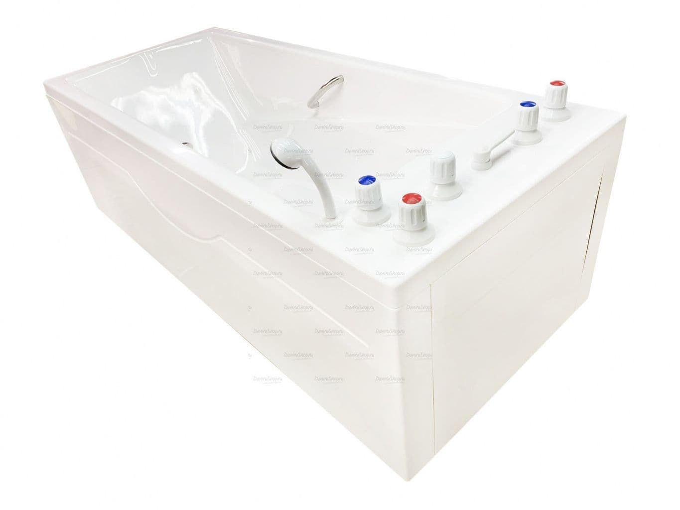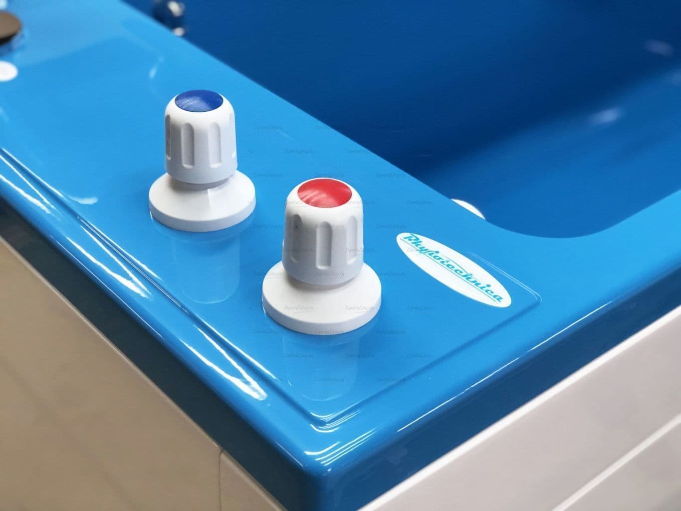 Удобная и понятная панель управления, оснащенная декоративными кранами и кнопками включения дополнительных опций, позволяет медицинскому персоналу легко контролировать режимы работы ванны и обеспечивает безопасность в процессе эксплуатации.