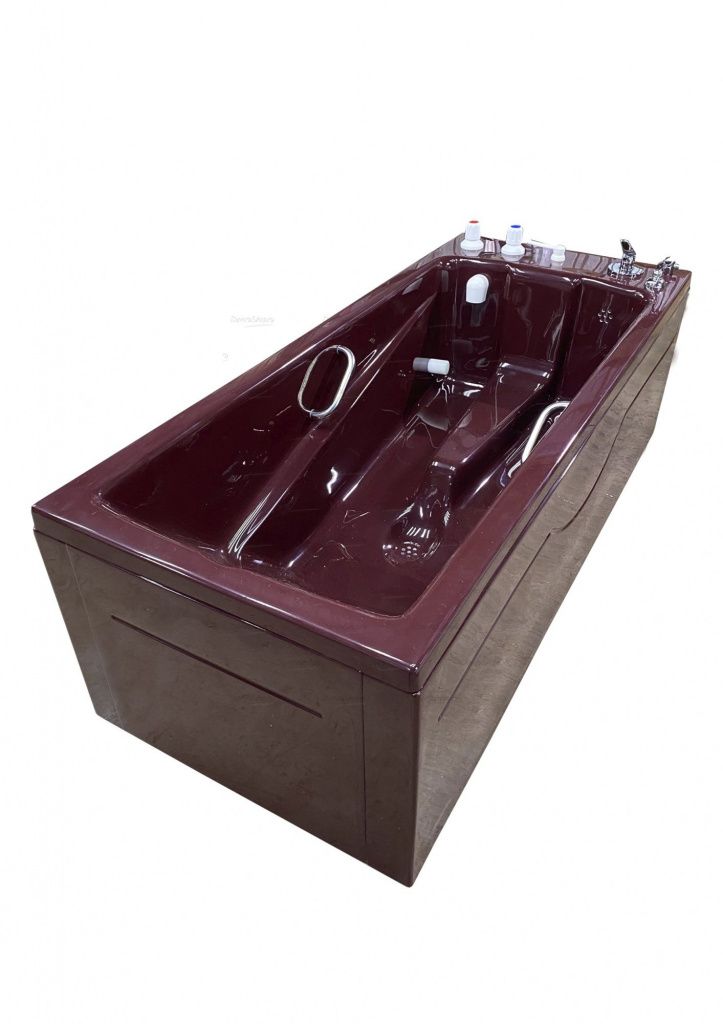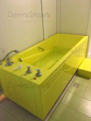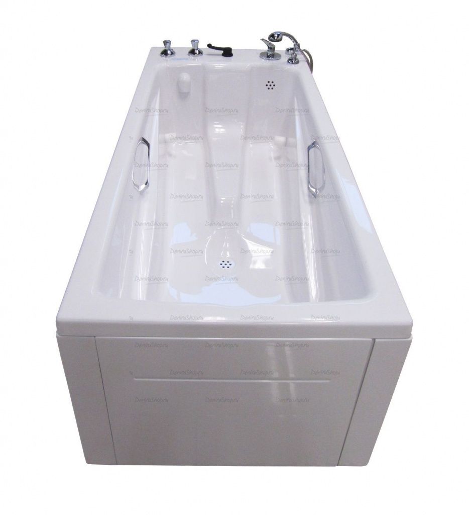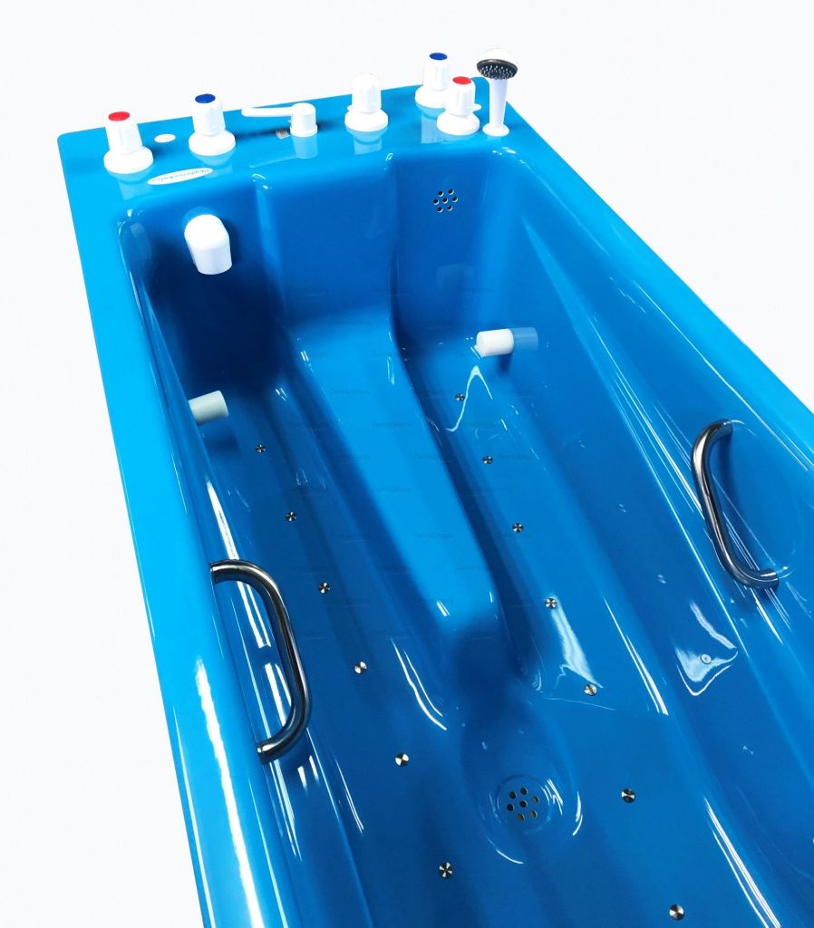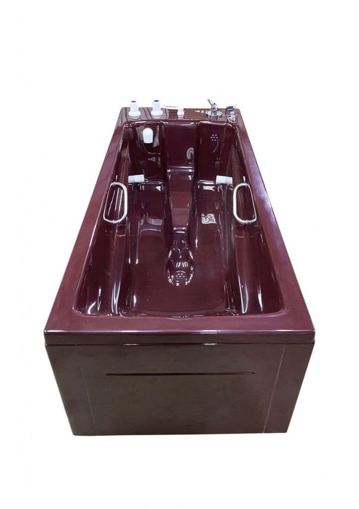 - Оптимальный полезный объем ванны и оригинальная форма ложа в виде шезлонга обеспечивают комфортное размещение пациентов различной комплекции