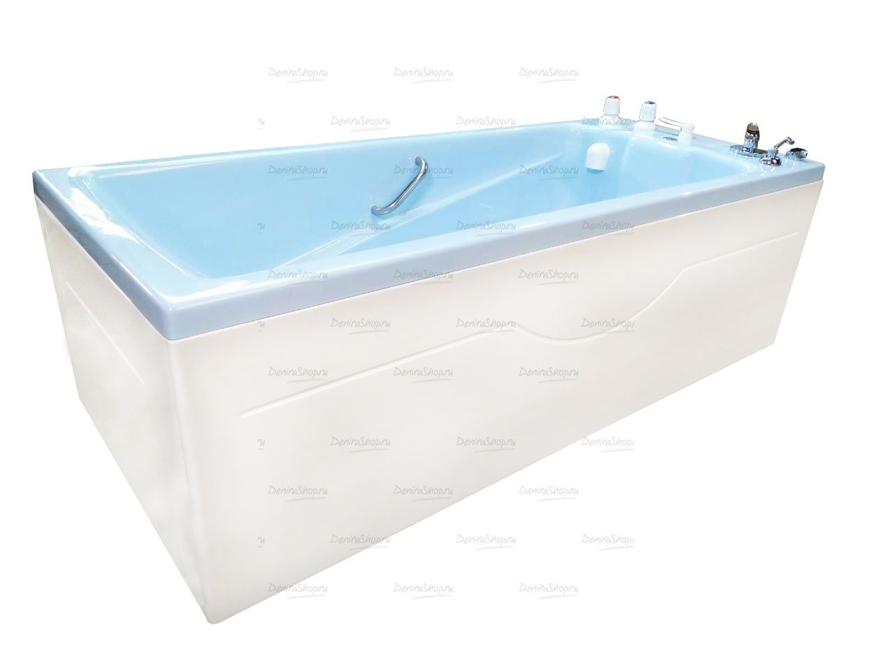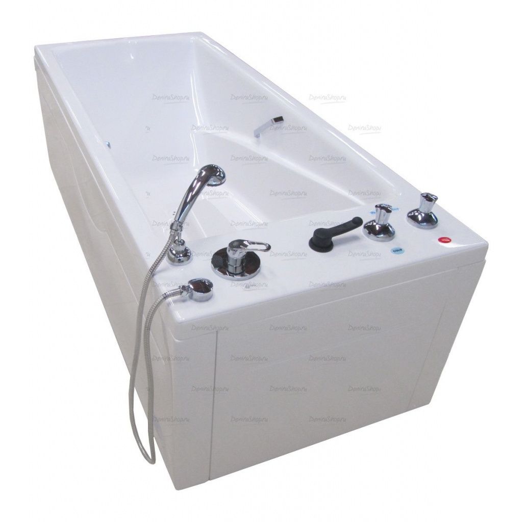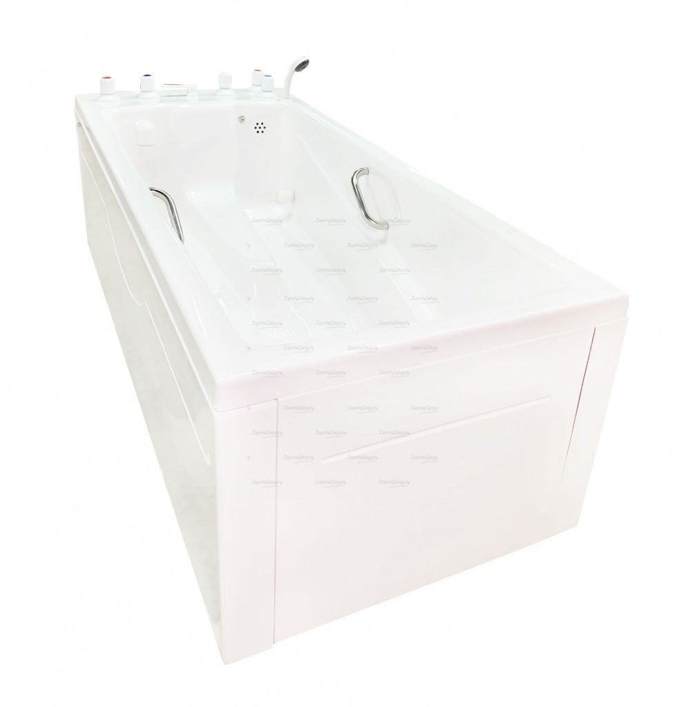 - Оптимальный полезный объем ванны и оригинальная форма ложа в виде шезлонга обеспечивают комфортное размещение пациентов различной комплекции