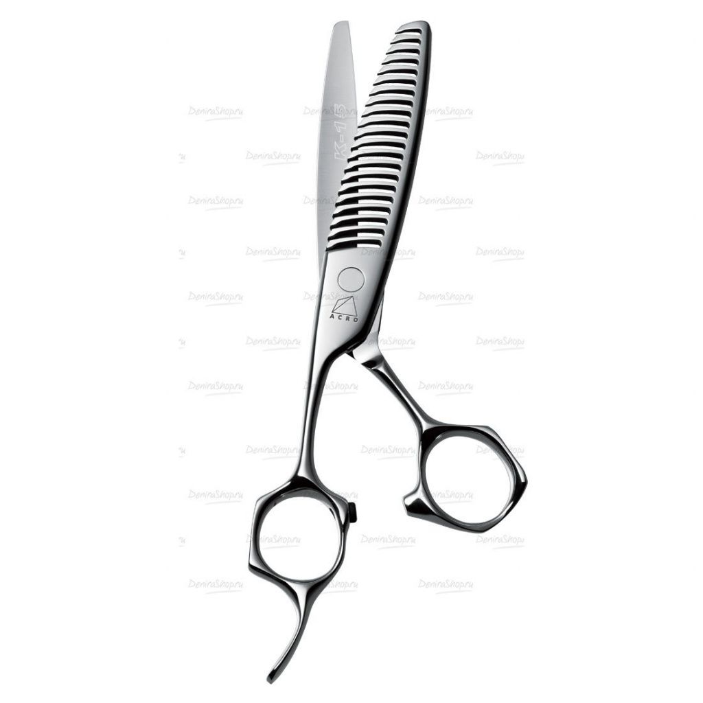 Профессиональные парикмахерские ножницы Acroleaf WIDE К15 для мягкой аккуратной филировки волос и придания внутреннего объёма. Новая форма филировочных зубцов и новая форма режущей кромки каждого зубчика позволяет осуществлять очень мягкую деликатную филировку, после которой не остаётся следов стрижки на волосах и причёска гораздо дольше сохраняет свою первозданную форму. Увеличенное внутреннее расстояние между зубчиками позволяет очень плавно выводить ножницы из волос, не цепляя и не дёргая их. Модель Acroleaf WIDE К15 предназначена для очень деликатной стрижки – процент снятия волос – 15-25% за один “шаг” в зависимости от положения рабочих полотен относительно пряди волос.