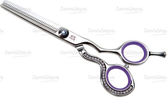 Парикмахерские ножницы филировочные 5,5" TAYO, 38 зубцов, фиолетовые стразы
